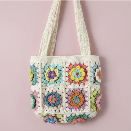 Handmade Black & White Crochet Flower Shoulder Bag – Elegant Dahlia-Inspired Knit Purse