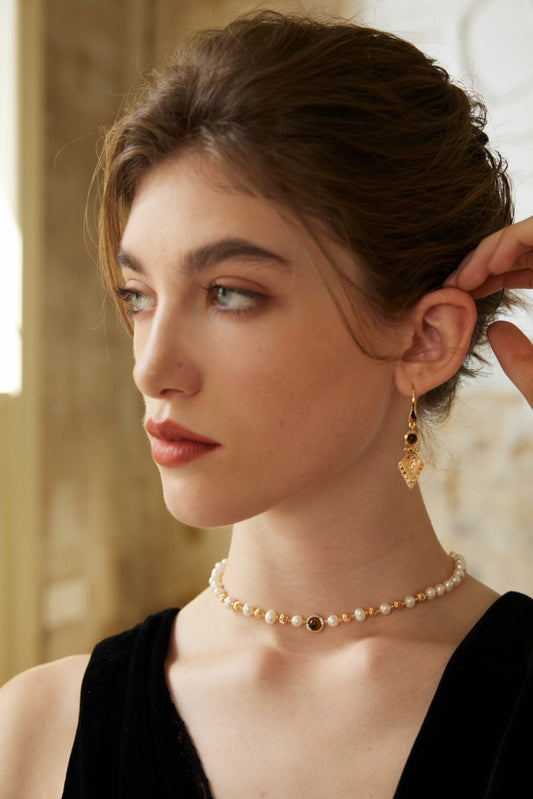 Starry Night Concerto Earrings | S925 Two-tone Natural Pearl Black Agate