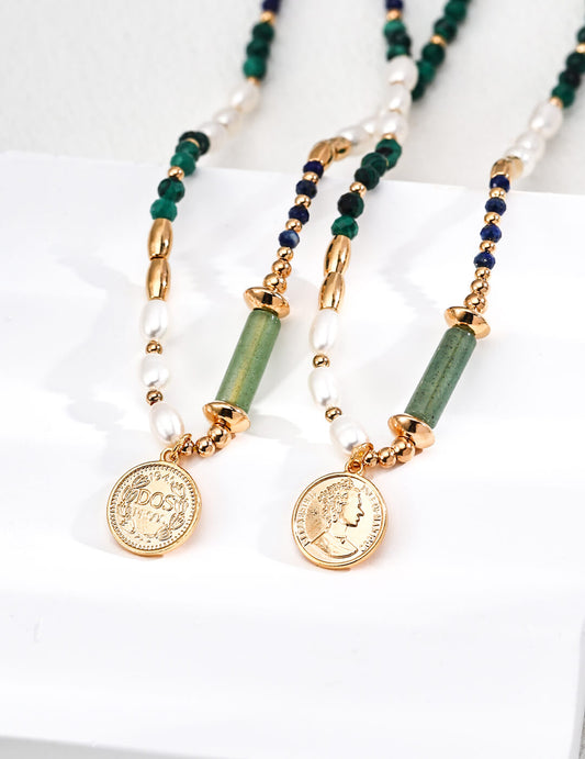 S925 Silver Pearl & Malachite Necklace – 18KT Yellow Gold Vermeil Elegance