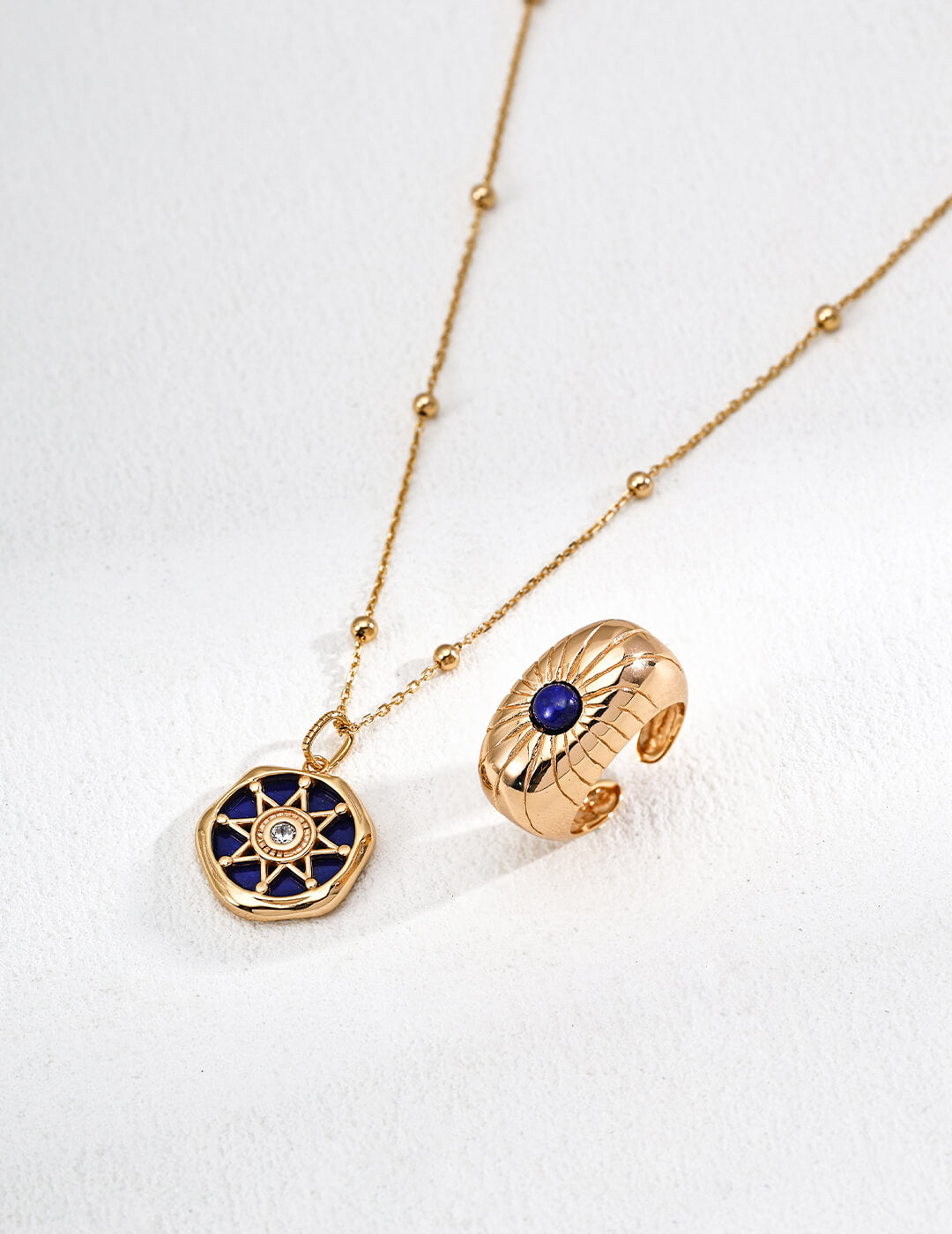 Recycled S925 silver curves hold lapis lazuli and mother-of-pearl, transforming society’s fiery scrutiny into quiet strength. Each irregular line is 【scorched history reborn】—proof that you rose from the heat unchanged.