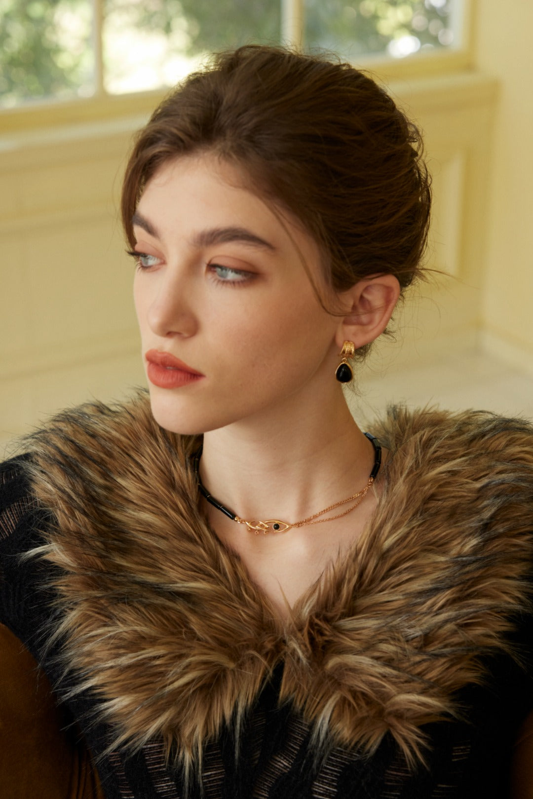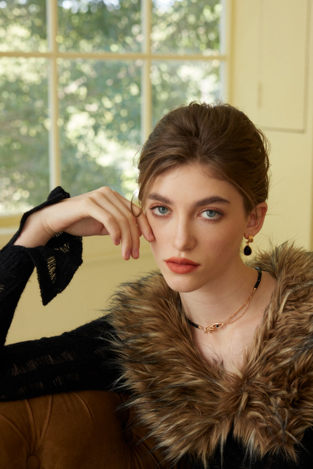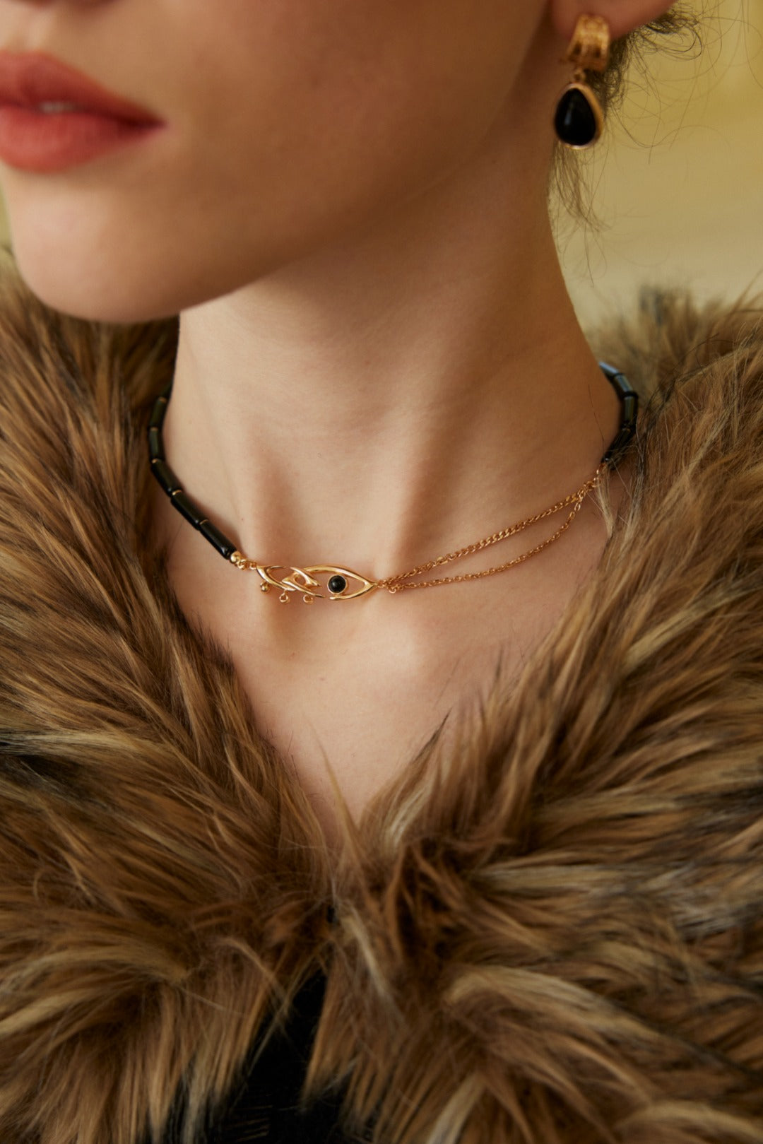 This striking necklace captures the mystery of black holes through sleek black agate and dual-toned chains. Crafted in S925 sterling silver with 18kt yellow gold vermeil, it balances darkness and light—creating a magnetic focal point between the collarbones.
