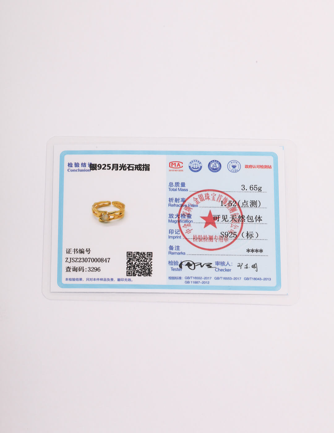 Crafted in S925 sterling silver with natural gray moonstone, this adjustable 9–15 ring channels poise and professional strength. The fluid silver band and aurora-infused gem enhance confidence, turning every gesture into a statement of authority.
