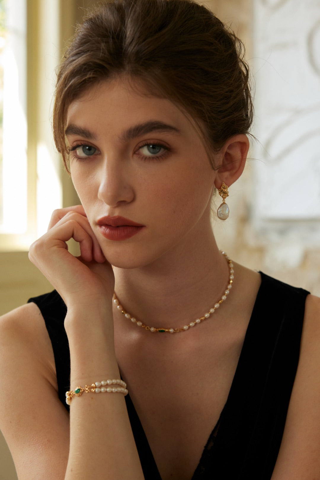 A modern piece of malachite and pearl jewelry designed to restore balance, elevate confidence, and infuse everyday life with cosmic vitality.