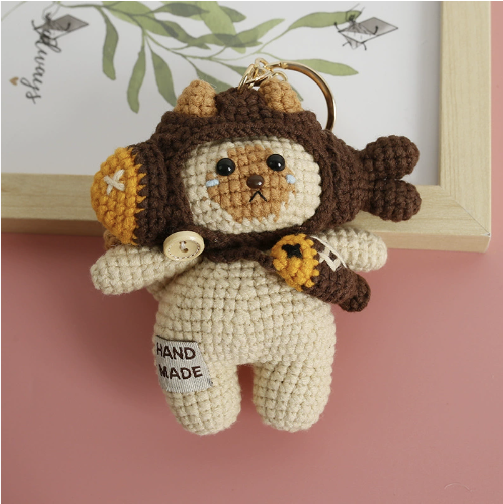 This unique handmade fish-head cat charm is crafted with detailed crochet work, giving it a playful and artistic look.