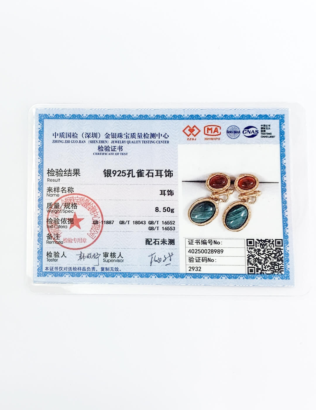S925 Silver Malachite & Carnelian Earrings – Vintage Gold Elegance