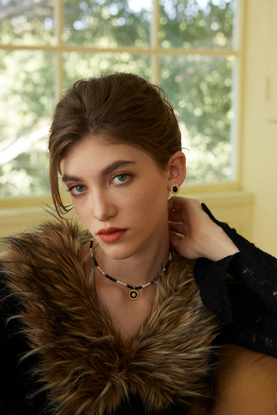 Material: S925 sterling silver, natural pearl, black agate, zircon, glaze, 18kt yellow gold vermeil