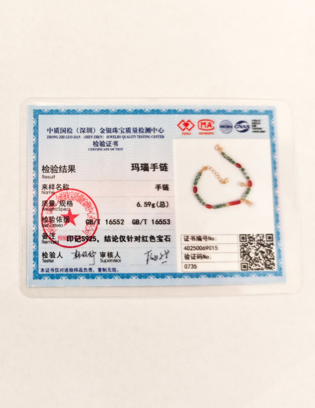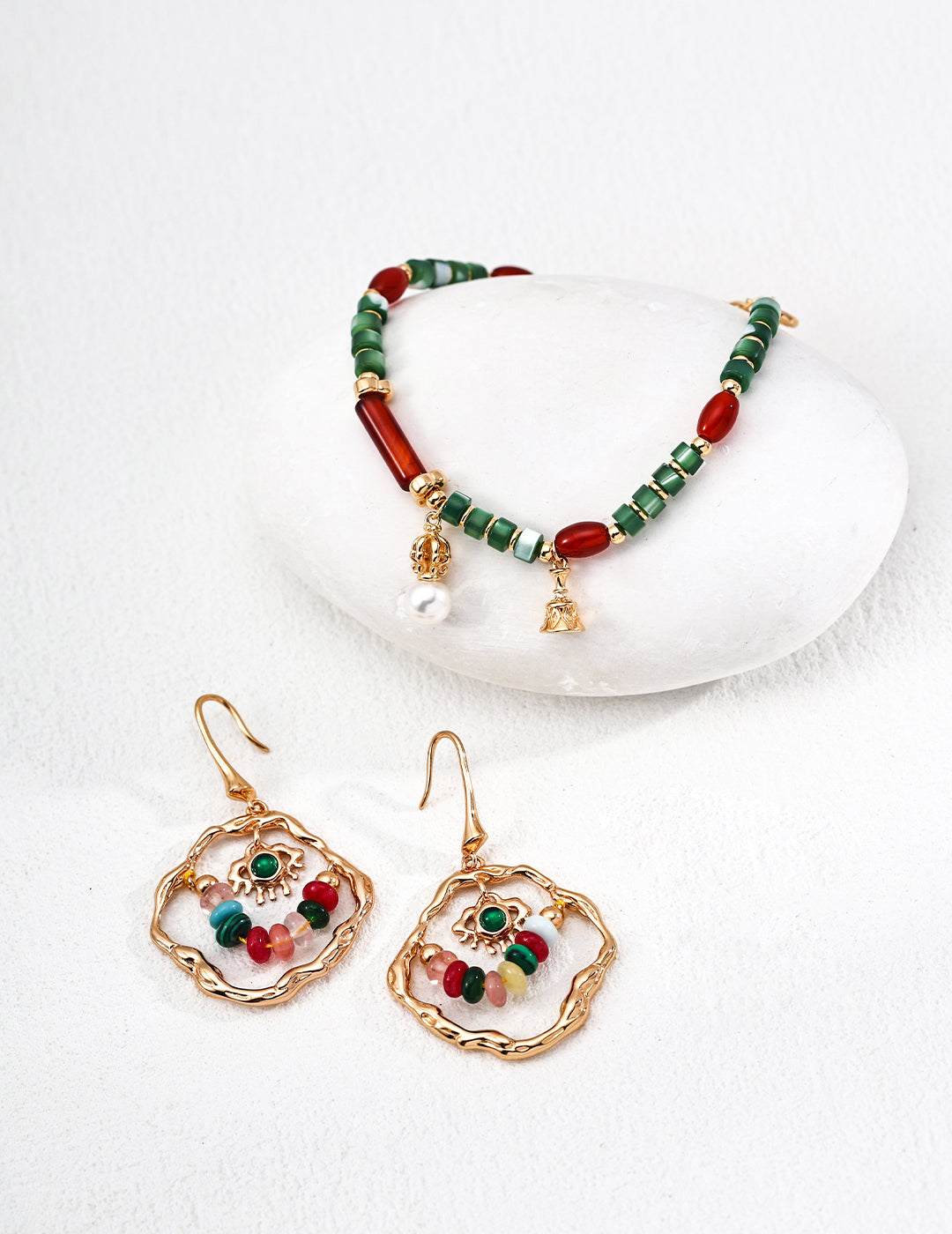 Astraluxe connects 6mm moonlight pearls, 4×6mm red agate and 4mm green shells into a microcosm - pearls are stars condensed from waves, agate hides the bloody memory of volcanic eruptions, and shells seal the green shadows of ancient oceans. The 1.5mm vintage gold chain uses the golden ratio of 16cm+3cm to outline the rhythm of the tide on the wrist.