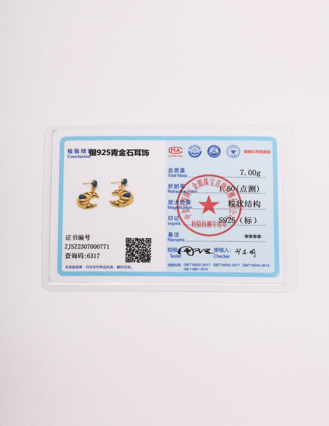 Material: S925 sterling silver, 18 kt yellow gold vermeil, natural lapis lazuli (approx. 4 × 6 mm),